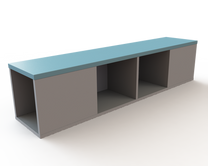 - Em MDP de 25mm com BP liso ou madeirado e borda de 3mm com raio de 2,5mm;